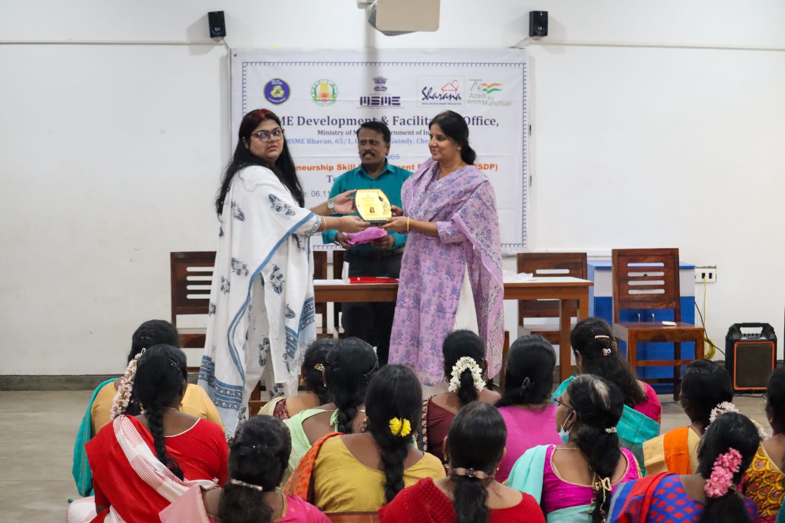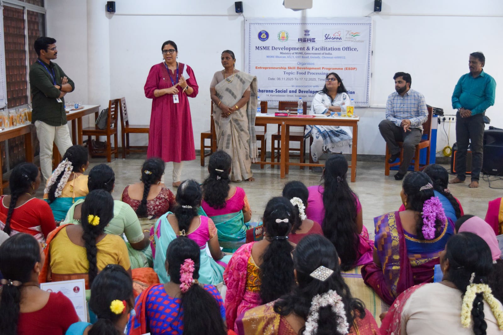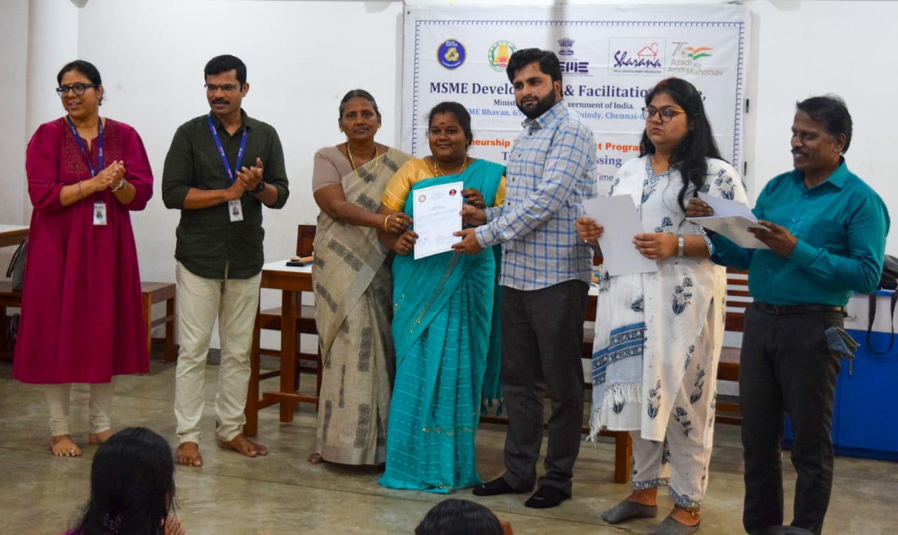 Echoing this sentiment, Vandana Shah spoke of how proud Sharana was of every woman who completed the program. She reminded the participants that while the training had come to an end, their journey was only just beginning and that Sharana would continue to walk alongside them as they took their next steps forward. A. Prakash, Program Manager, delivered the vote of thanks, appreciating the collective effort of MSME, the trainers, Sharana’s team, and the women who made the programme a success.