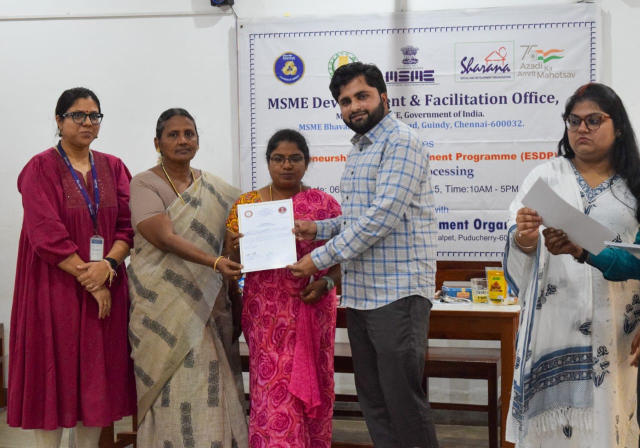 Echoing this sentiment, Vandana Shah spoke of how proud Sharana was of every woman who completed the program. She reminded the participants that while the training had come to an end, their journey was only just beginning and that Sharana would continue to walk alongside them as they took their next steps forward. A. Prakash, Program Manager, delivered the vote of thanks, appreciating the collective effort of MSME, the trainers, Sharana’s team, and the women who made the programme a success.